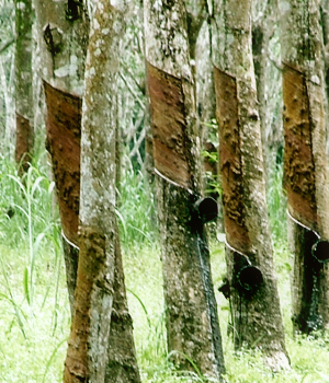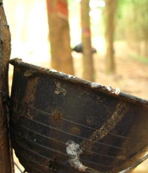 Rubber is tapped and left to dry in cups (called cup lumps) |