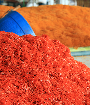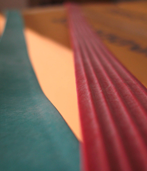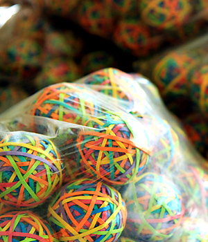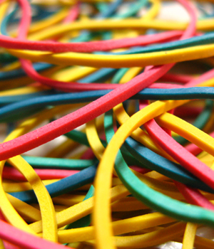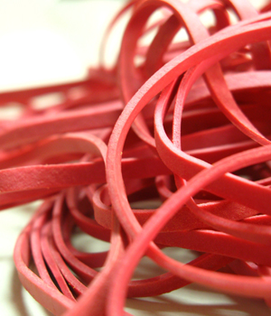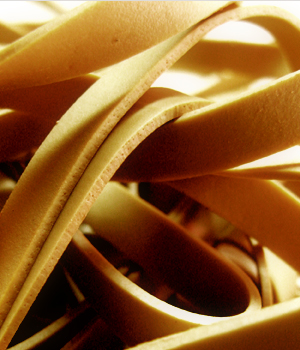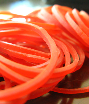 Sheets are fed through the extrusion machine (diameter and thickness of bands are determined here) |
